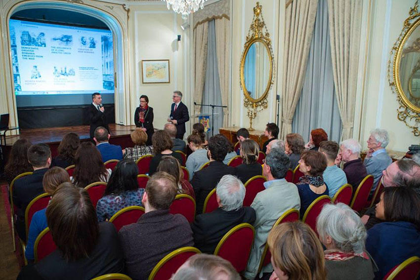 În seara aceleiași zile, am participat la lansarea elaboratului website în limba engleză, care spune extraordinara poveste a Marii Uniri pentru publicul anglofon de pretutindeni. De-a lungul celor câtorva luni în care a fost creat, m-am aflat în permanentă legătură cu echipa ICR Londra, urmărind apariția acestui pe cât de util, pe atât de atractiv instrument de promovare a țării noastre. Site-ul poartă titlul The Making of United Romania / Făurirea României Mari și are motto-ul “The greatest Romanian story ever told / Cea mai frumoasă poveste românească spusă vreodată”.
